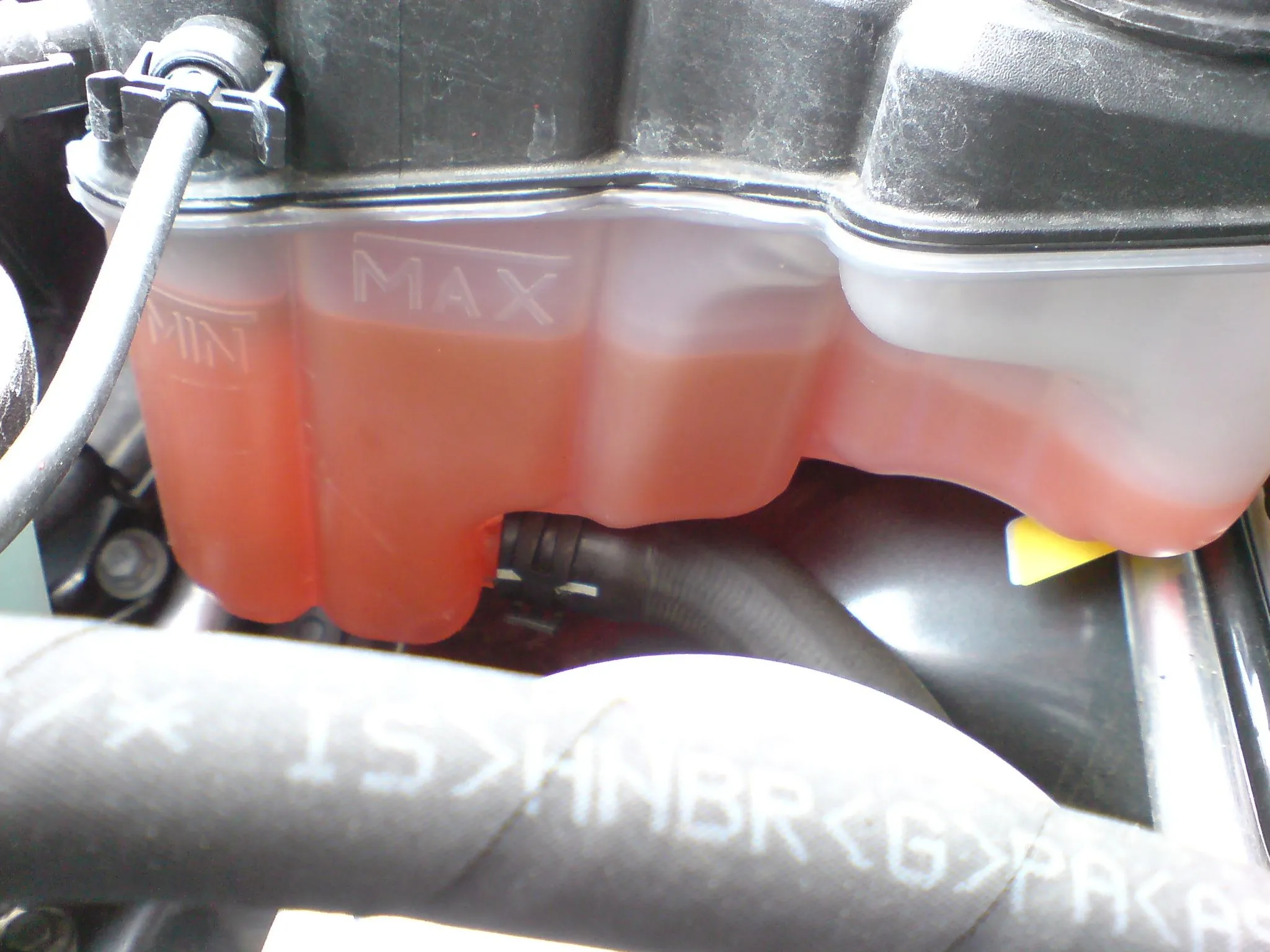 Allerdings befindet sich der Kühlwasserstand auch leicht unterhalb der MIN Markierung in der ersten Kammer. Wie paßt das zusammen?