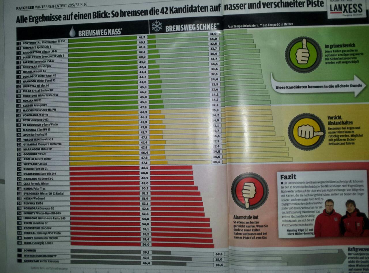 Gestern hatte ich was zu Chinawinterreifen was im tv gesehen. Die waren auch auf nasser Fahrbahn ok aber die Chinesen haben zwischen den Lamellen die schlitze nicht 8mm tief wie das restliche Profil gemacht sondern noch so 2-3mm. Also jetzt stellt euch die Reifen mal nach 10-15tkm vor. Unglaublich aber leider wahr die Geschichte. Glaube war Galileo auf Pro7.