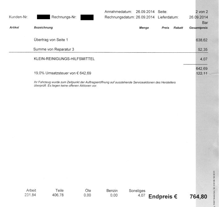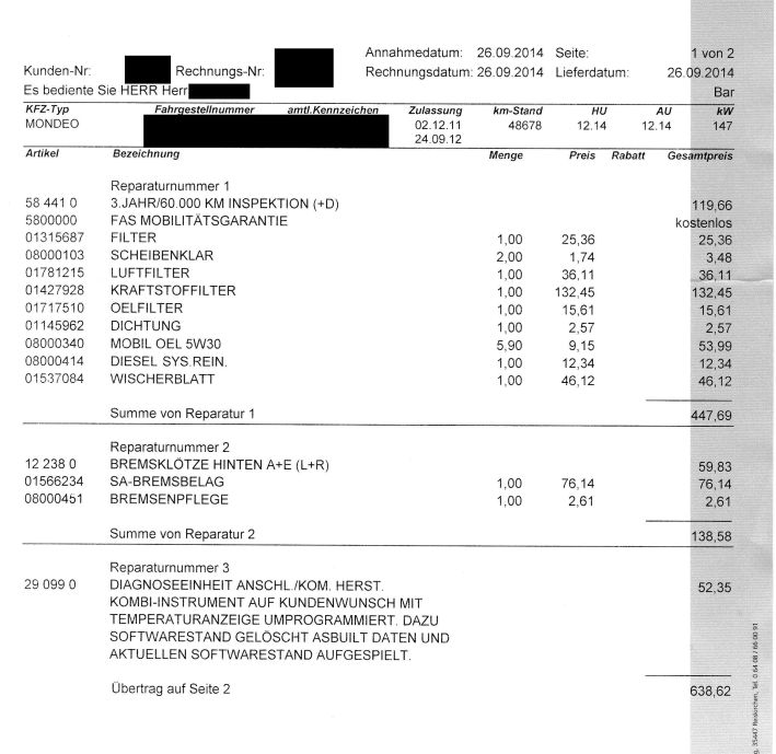 Mein Großer war auch zur Inspektion, 3. Jahr, 60 000 km.