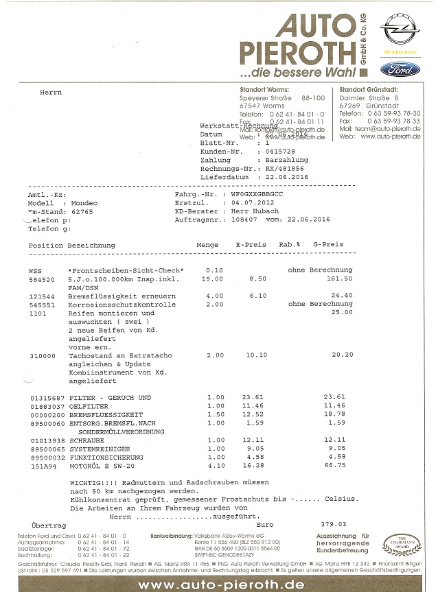 Ich habe mir den Mondeo heute Nachmittag 16:00 Uhr angesehen und die FIN notiert = WF0GXXGBBG7J05166, EZ 12/2007, 108.000 Km.