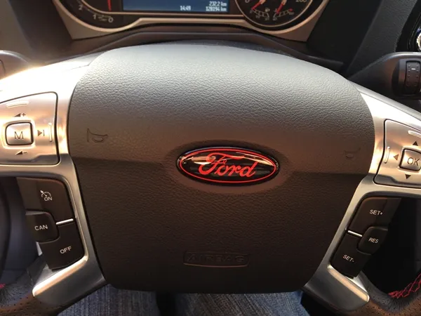 - rot/schwarze Ford-Pflaume auf Lenkrad