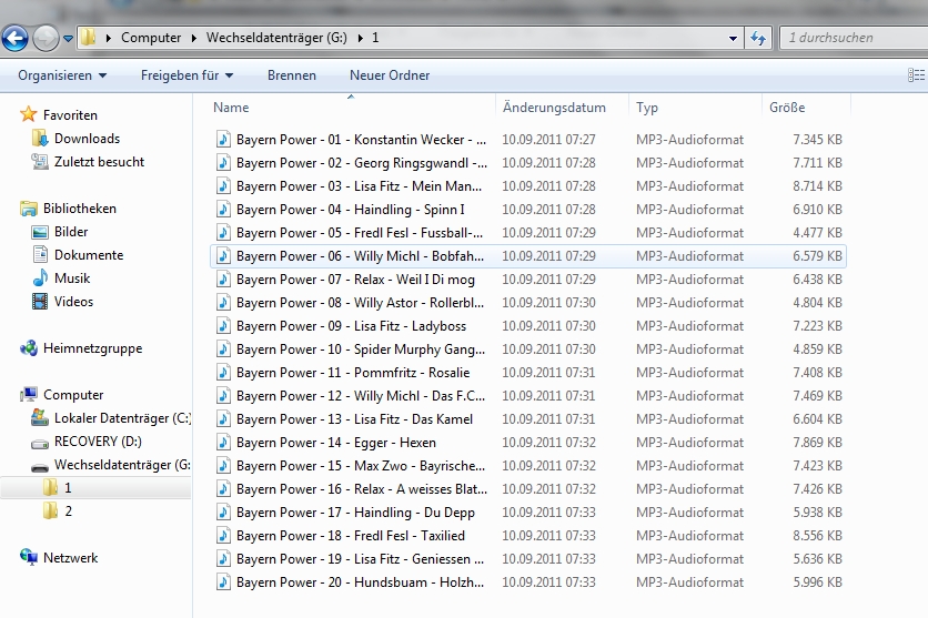 Wie schon gesagt, ist es lediglich wichtig alle Dateien im MP3Format zu speichern. I-Tunes-Format (ma4) wird bei mir nicht erkannt.