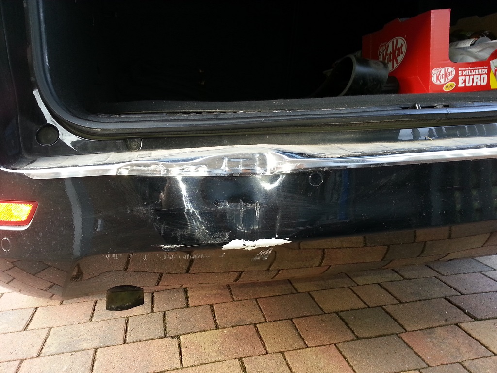 Da ich schon bei der Werkstatt war und er mir sagte das man die Beule wohl entfernen könnte aber der Ladekanteschutz ist wohl nicht mehr zu retten ![]()