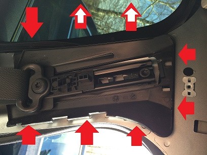 die roten pfeile zeigen die punkte der nasen , die weisse sollen zeigen das man die türdichtung entfernen sollte