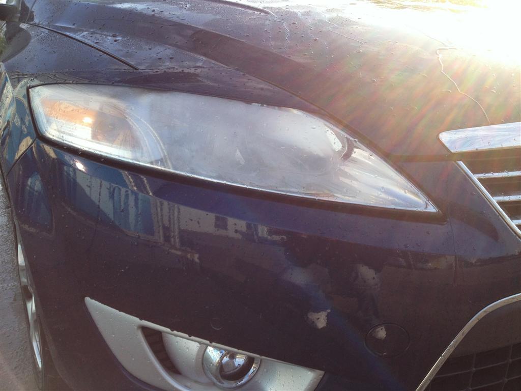Ich war vorhin (ca. vor 2h) in der Waschbox und als ich fertig war, sah mein rechter Scheinwerfer so aus: