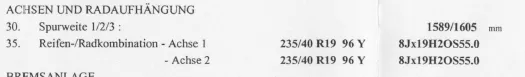 Bei den Sommerrädern ist es etwas anders im Schein steht 235/35R19 95W und montiert sind 235/35R19 91Y