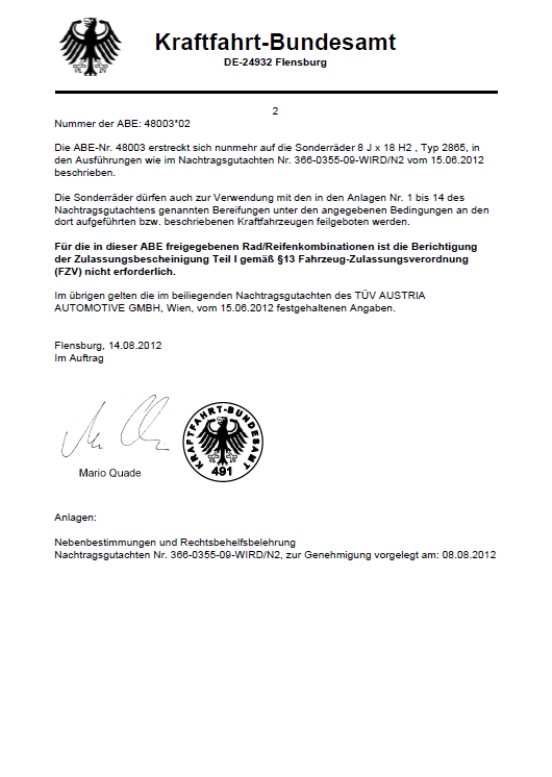ZitatAlles anzeigenWird eine in diesem Gutachten aufgeführte Reifengröße verwendet, die nicht bereits in der Fahrzeuggenehmigung für diesen Fahrzeug