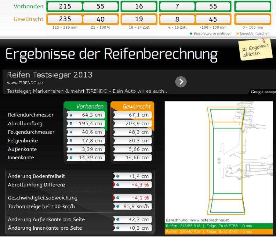 Aber mal ehrlich, der Unterschied zwischen 235/40 R18 (die Du lt. Ford ohne LEB fahren darfst) und 225/40 R18 ist der Unterschied nicht wirklich groß, vom Komfort her dürfte das eigentlich nicht viel ausmachen, und vom technischen her auch nicht siehe Pic.