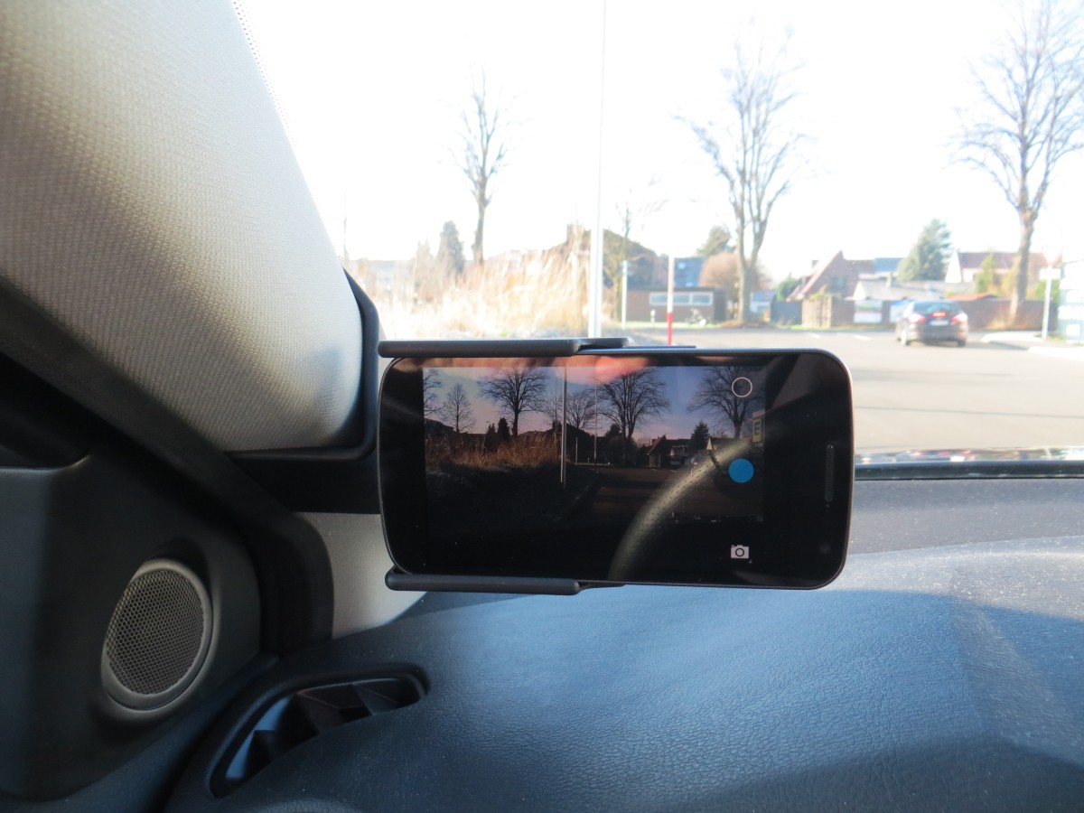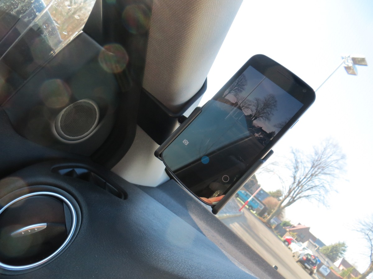 • Ich habe die Handyhalterung an der A-Säule und mit einem Handy mit relativ grossem Display ( ich habe ein Google Galaxy Nexus i9250 ) mit 4,x Zoll geht das auch ganz gut.