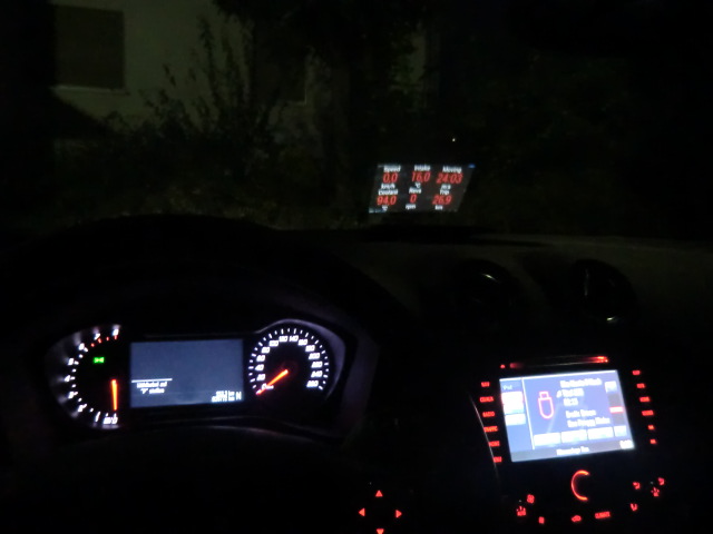 was noch gut an unserem großen Display ist ,man kann in der app auf HUD(head up Display) umstellen ,d.h. bei nacht hat man es in der Frontscheibe ,ich mach mal die tage bilder davon