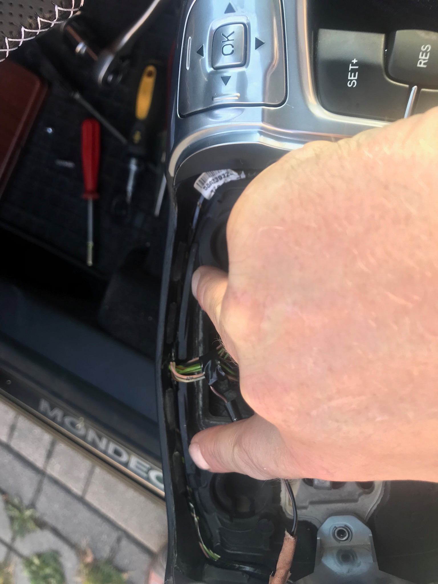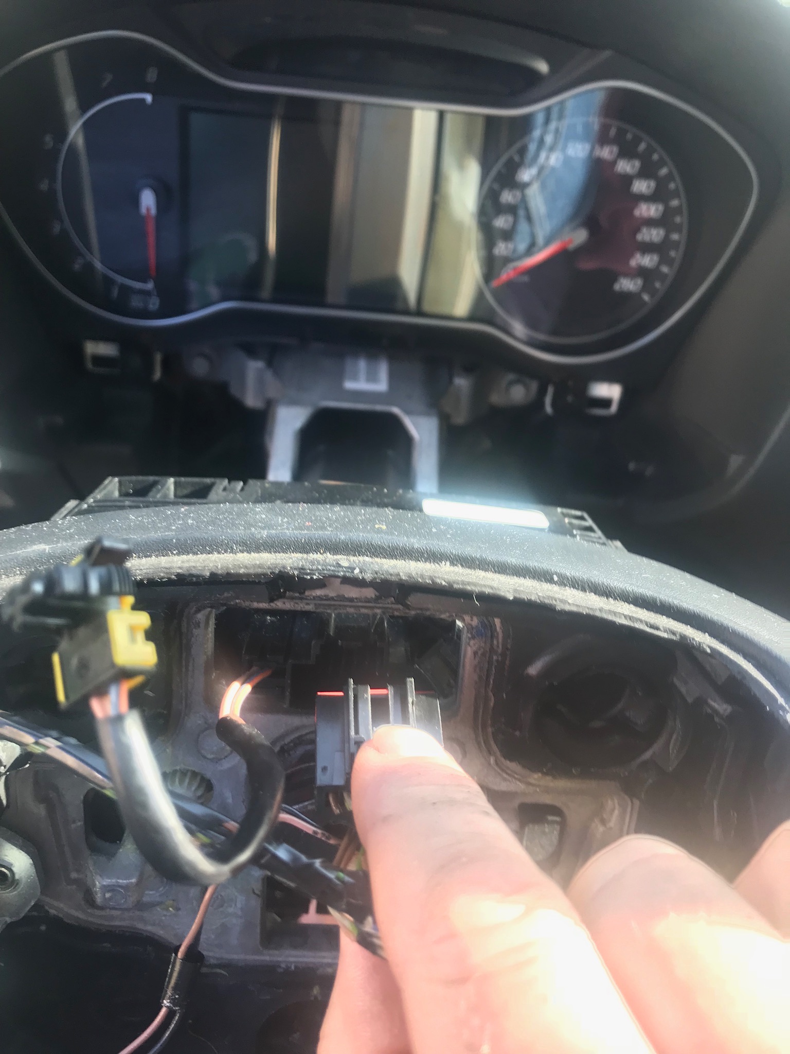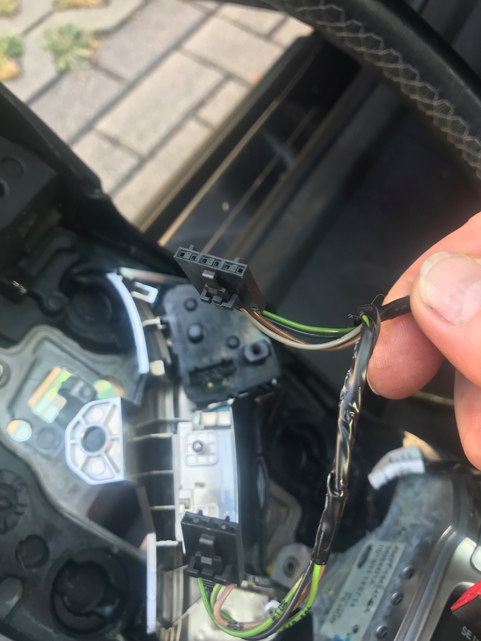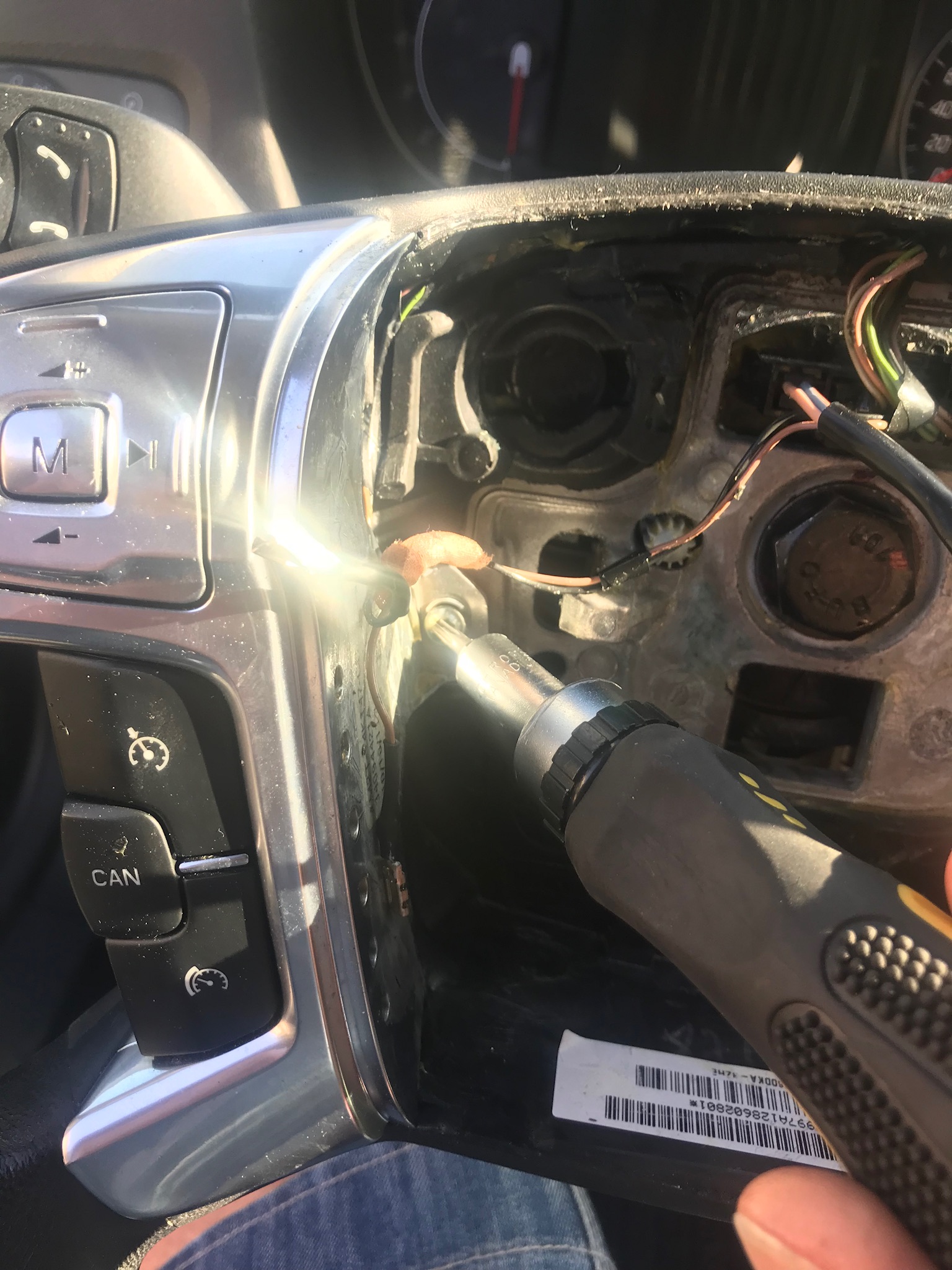 - ich habe die Lenkradverkleidung demontiert für ein besseres arbeiten, 2 Schrauben an der Unterseite der Verkleidung entfernen, bei mir war es eine Torx und eine 6 Kant Schraube und den Stromstecker am Lenkrad entfernt, Spar ich mir das abklemmen der Batterie