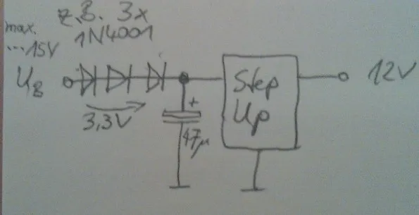 "Wobei ich versuchen würde zuerst mit einem StepDown 8 Volt zu erzeugen und dann mittels StepUp stabile 12 Volt erzeugen."