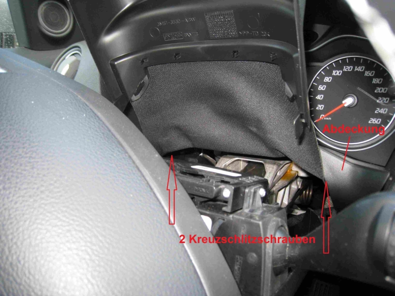 Dafür brauch ich eure Hilfe, denn ich komm nicht weiter. Bisher habe ich die obere Lenksäulenverkleidung ausgeklipst und nach oben geklappt, so dass ich die beiden Schrauben, mit denen das Kombiinstrument unten links und rechts angeschraubt ist, lösen konnte. Danach war das Kombiinstrument als auch die Verkleidung, an der die Lenksäulenverkleidung hängt, locker. Allerdings konnte ich weder die Verkleidung noch das Kombiinstrument nach vorne rauziehen.