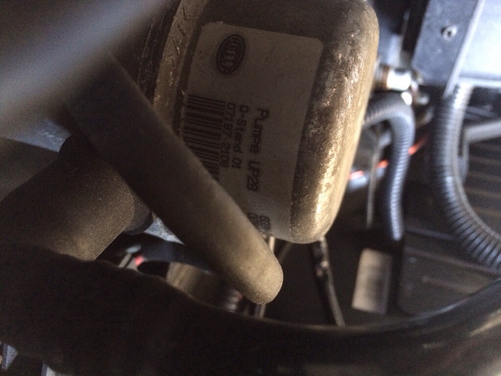 Der Sitz der Sicherung ist in der Verteilerbox, allerdings sitzt vorher noch der Bremsflüssigkeitsdrucksensor, und dann kommt die Pumpe.