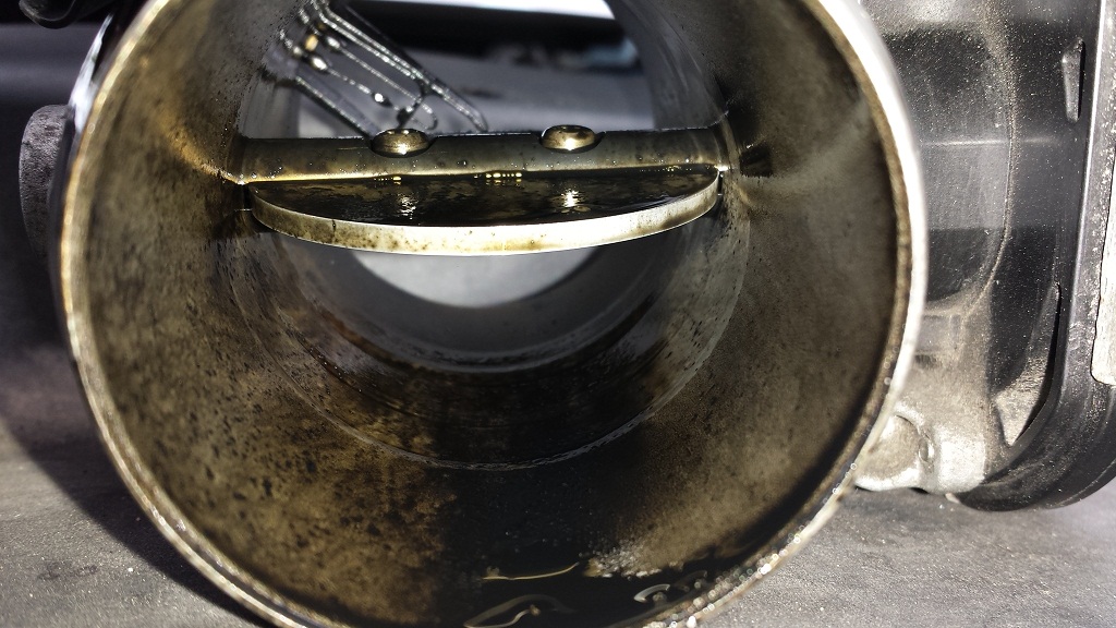Strömungstechnisch betrachtet kommt die Kurbelgehäuseentlüftung hinter der Drosselklappe an. Blöd ist halt, dass sie oberhalb sitzt und nach Abstellen des Motors die Suppe nach unten in die DK läuft.
