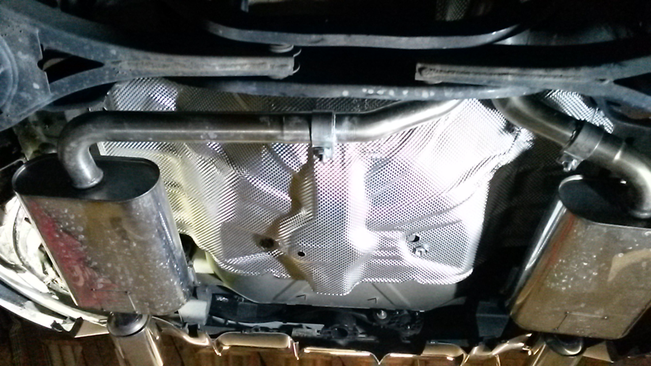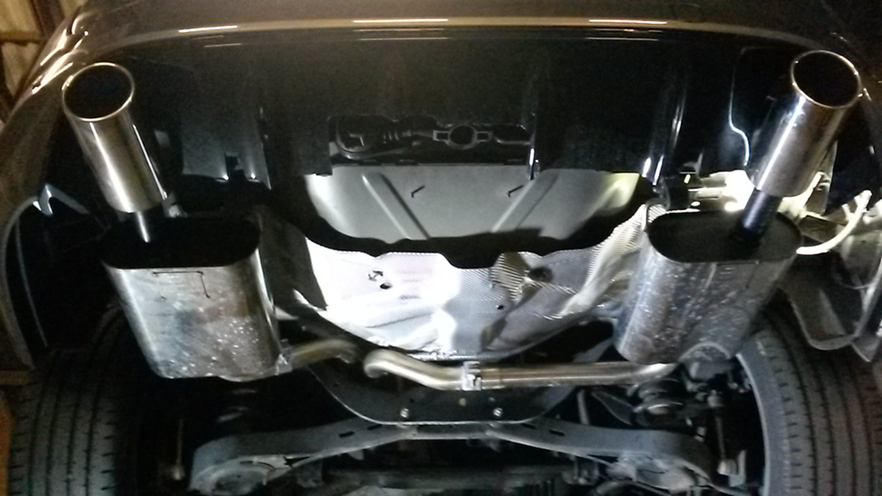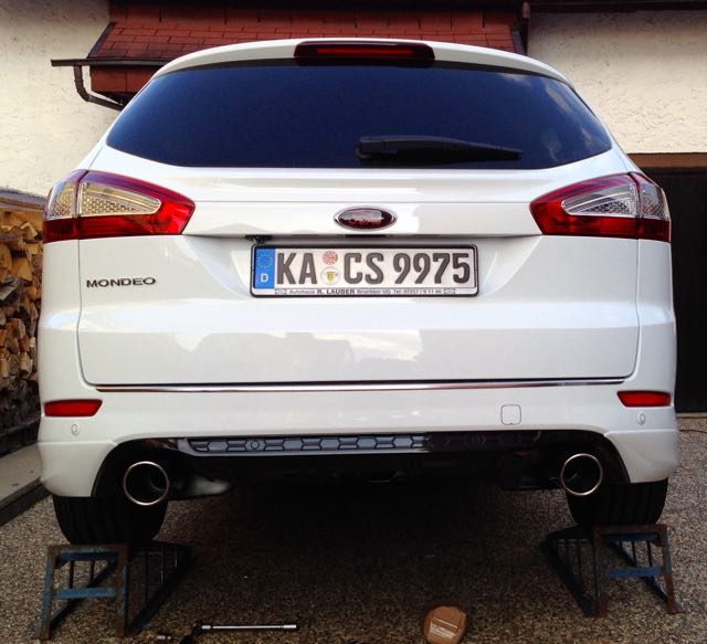 Update, die Anlage ist montiert, mir gefällt die Heckansicht jetzt wesentlich besser. Der Einbau ist recht einfach, es musste nur der rechte Ausschnitt im Diffusor ausgeschnitten werden. Alles andere war ein Kinderspiel.