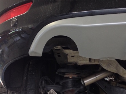 Runde Rohre sind doch Original, oder irre ich da. Aber ovale habe ich noch nicht gesehen. Eigentlich sollten es eckige werden aber der Diffusor war ja schon so vorgeformt und da hatten die Jungs das noch ein bisschen höher ausgearbeitet, das die Rohre höher kommen. Die Nachschalldämpfer hängen eher ein bisschen tiefer als der Originale. -