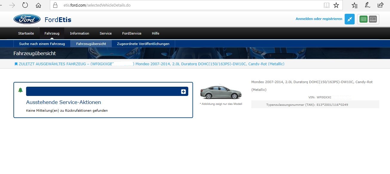 Hallo Zusammen, bei FordEtis wird mir nix weiter als die Farbe und der Motor angezeigt. Wie kann das sein?