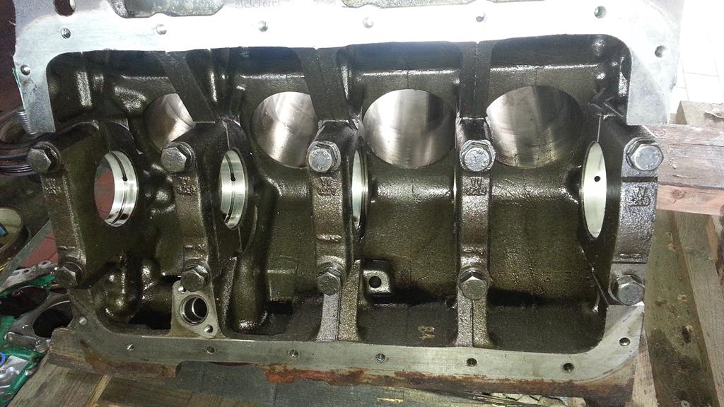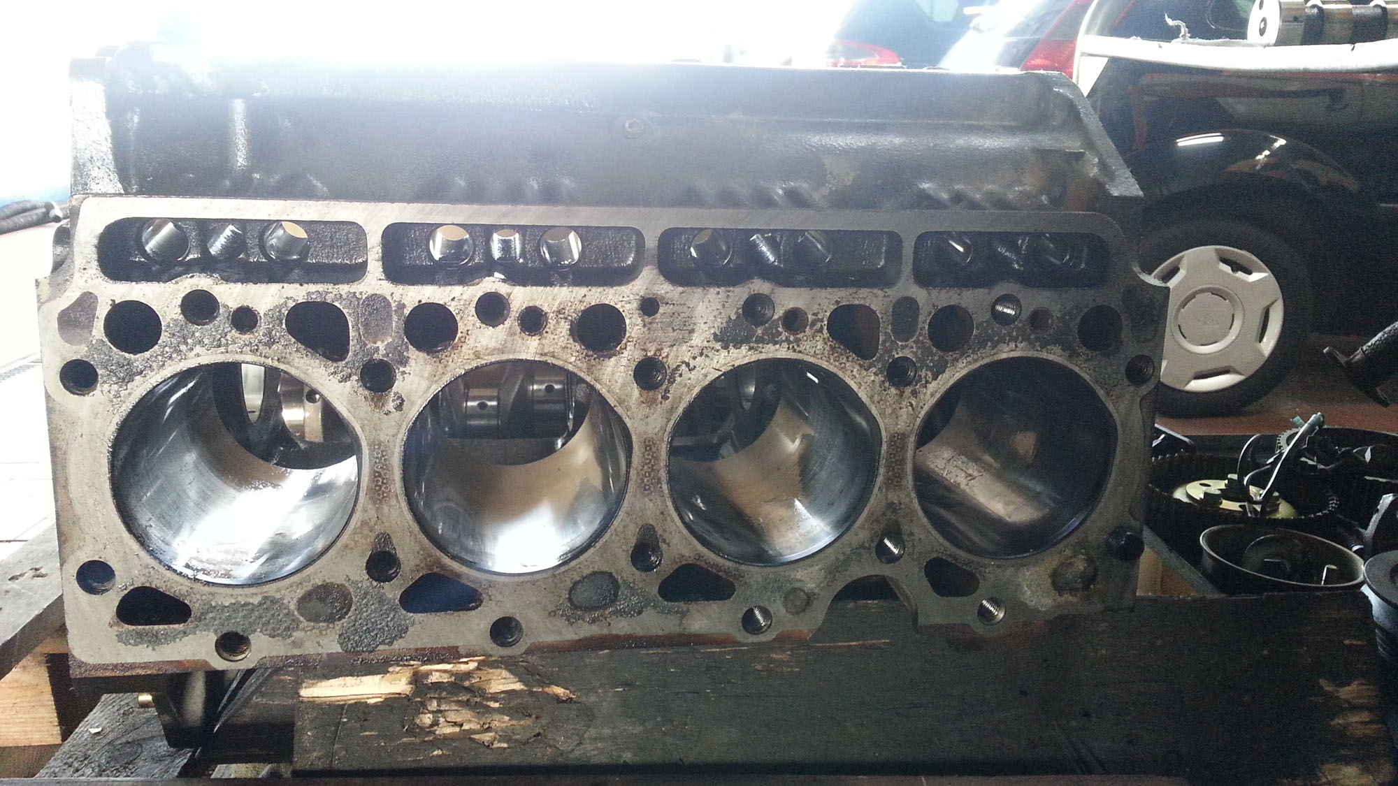 Dort bekommt er einen neuen Kolben, alle anderen Kolben bekommen neue Ringe, alle Zylinder werden gehohnt