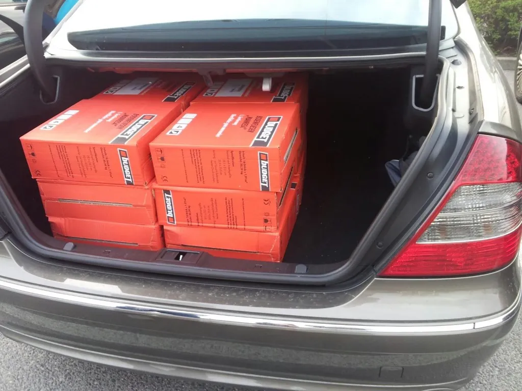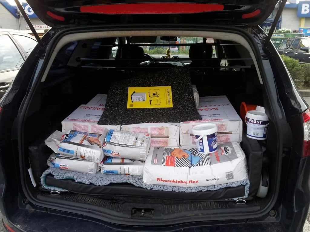 20 Flaschen Wasser (im Fussraum der Fondpassagiere)