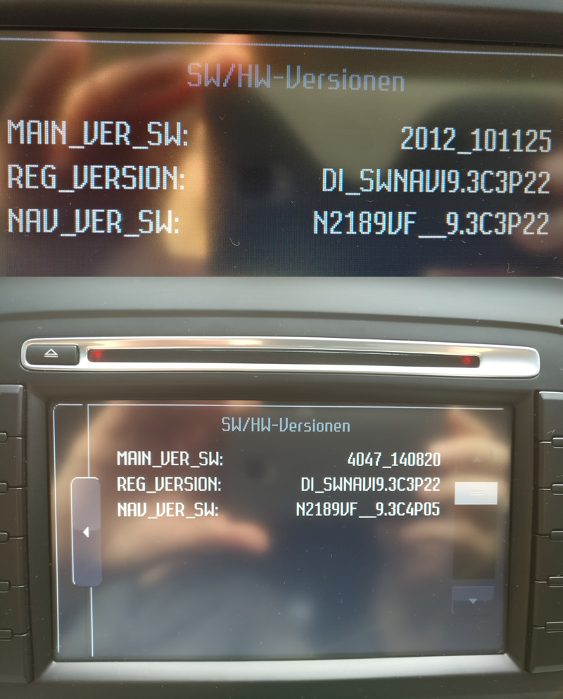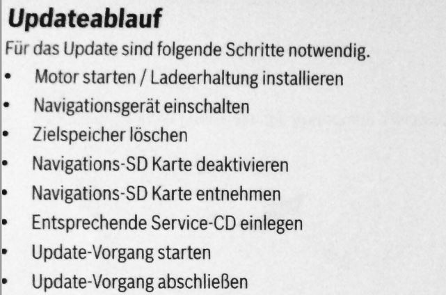 Aus den vorherigen Seiten weiß ich, dass der Motor laufen sollte ggf. die SD Karte raus sollte und man eigentlich nur die CD reinschieben muss und alles Weitere wird dann nur übers Display bestätigt und es werden 2 Updates gefahren.