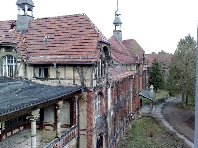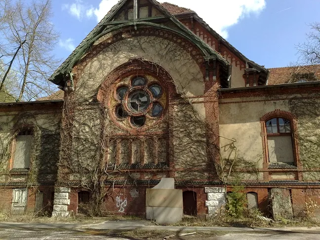 Es ist das Lungensanatorium Beelitz Heilstätten. Wir machen eingentlich fast immer halt wenn wir vorbei kommen. Ist echt der Hammer. Viele Gebäude, welche verfallen, ein riesiger Park mit Efeuberankten Bäumen. Dort könnte man einen Horrorfilm drehen, von der Kulisse her. Leider sind mittlerweile viele Häuser zugenagelt. Aber es gibt immer noch genug Zugänge zu den Häusern.