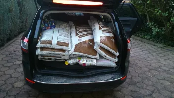 HAb im Octavia mal 20 sack Setzfix a 20 kg gefahren....der hat gut Männchen gemacht und sah so ähnlich aus wie Dein Bild mit der Blumenerde.