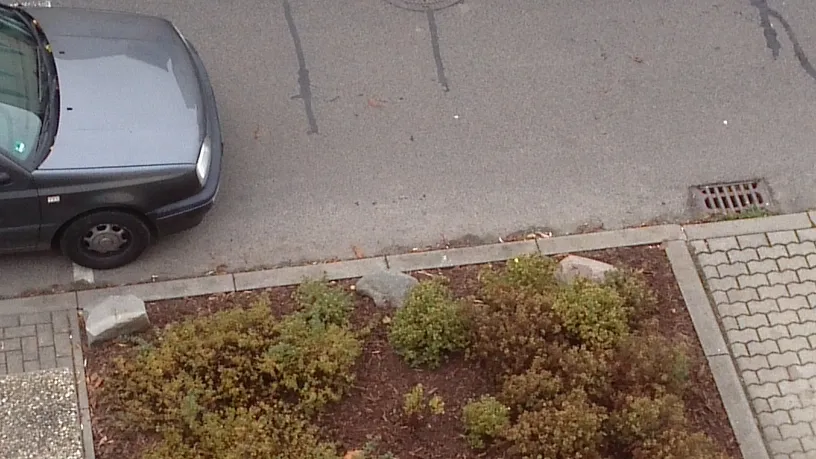 Der Stein liegt auf Gemeindegrund, die Parkfläche ist Gemeindegrund.... UND ich bin nicht gefahren!