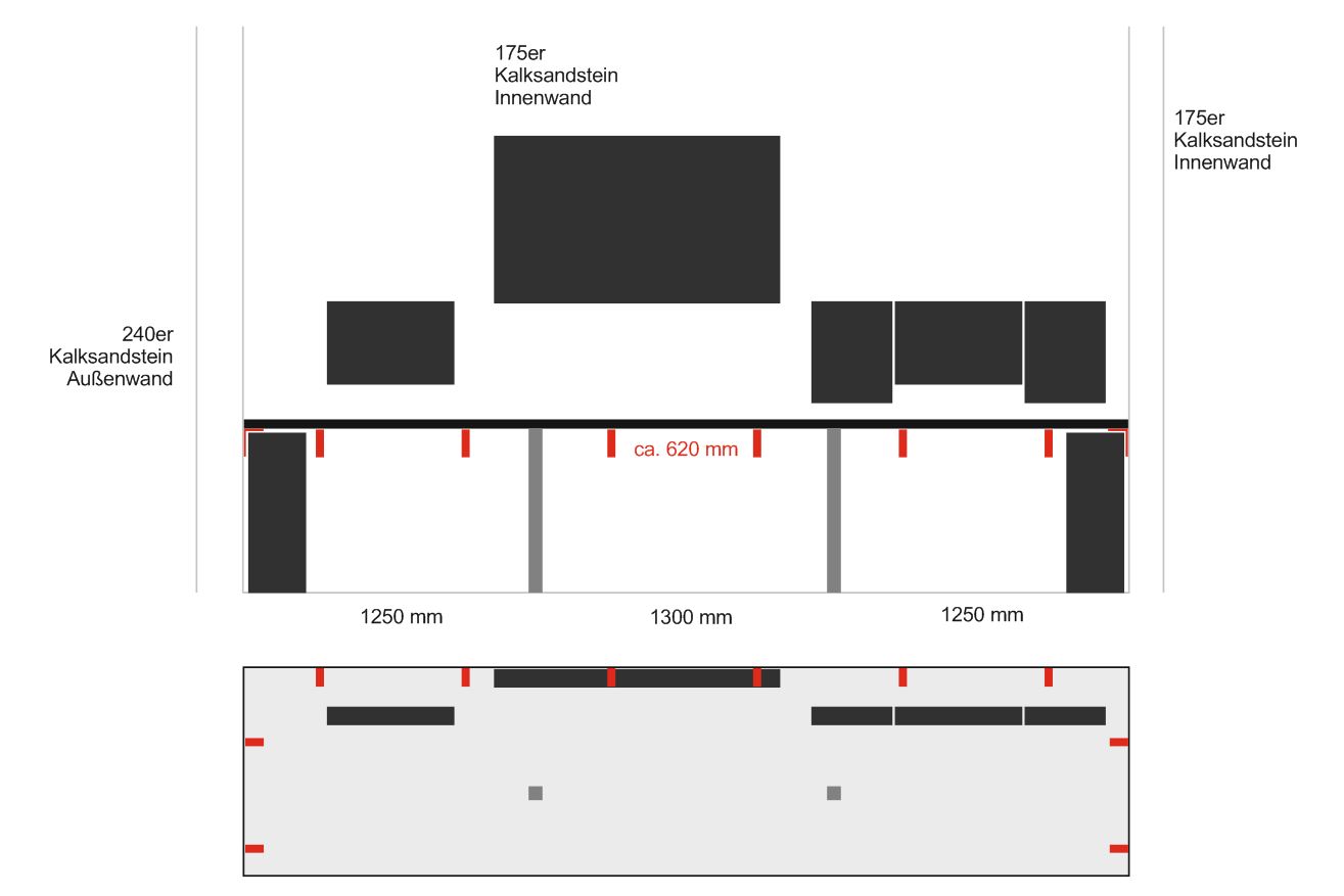 Wenn man nach den Rechnern noch jeweils eine Stützwange setzen würde, wäre die Tragweite auch nicht 3800mm sondern 3000mm. Das würde der ganzen Konstruktion sicherlich gut tun.