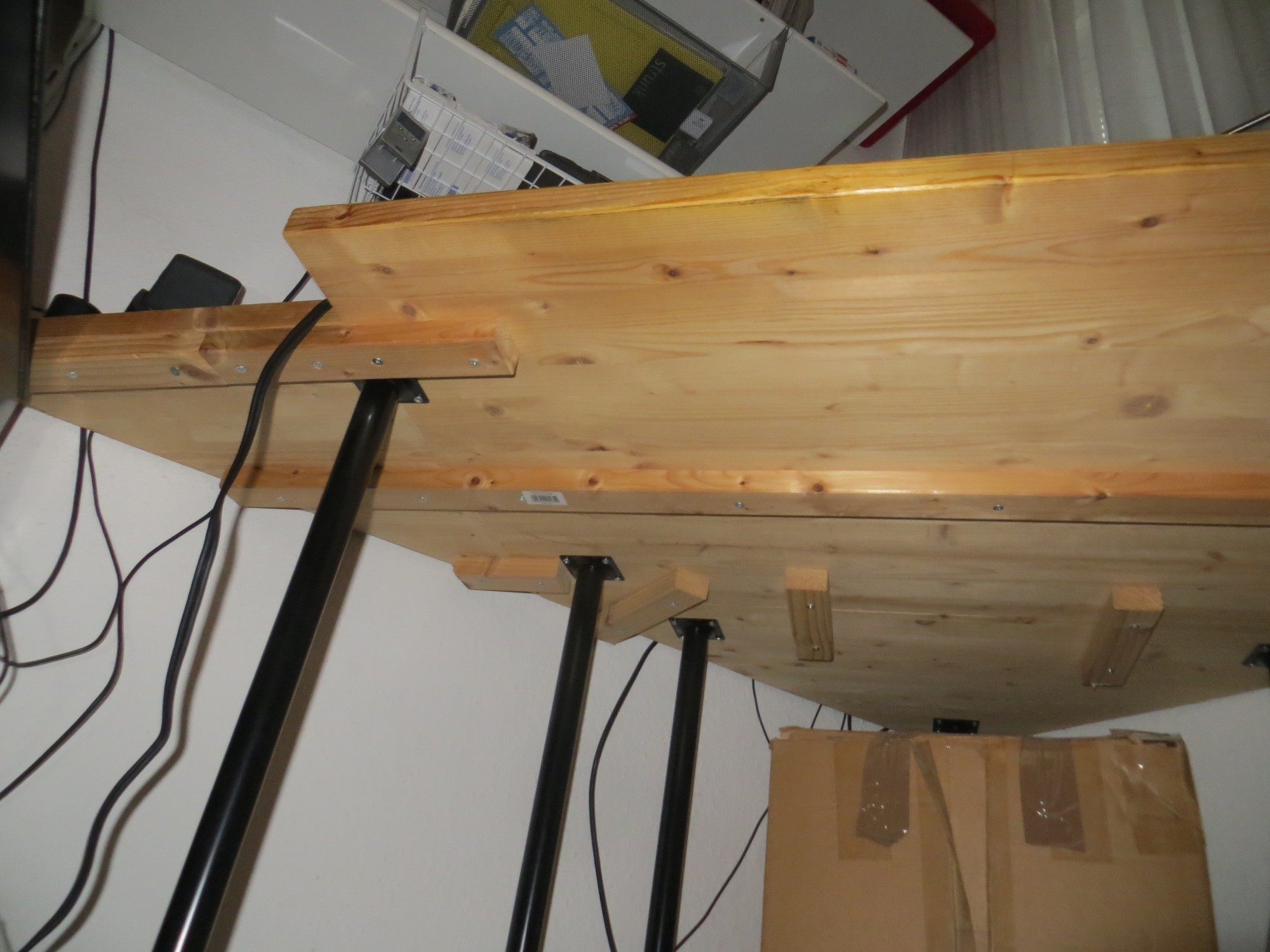 Schätzungsweise wird die Arbeitsplatte inkl. dem was drauf stehen wird irgendwo bei 150kg bis 200kg liegen.