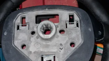 kein Umbauer wagt sich an den inneren Stahlring (hier grün) des Lenkrades, da dies eine erhebliche bauartbedingte Veränderung eines sicherheitsrelevanten Bauteiles ergäbe und zum Erlöschen der Betriebserlaubnis führt.