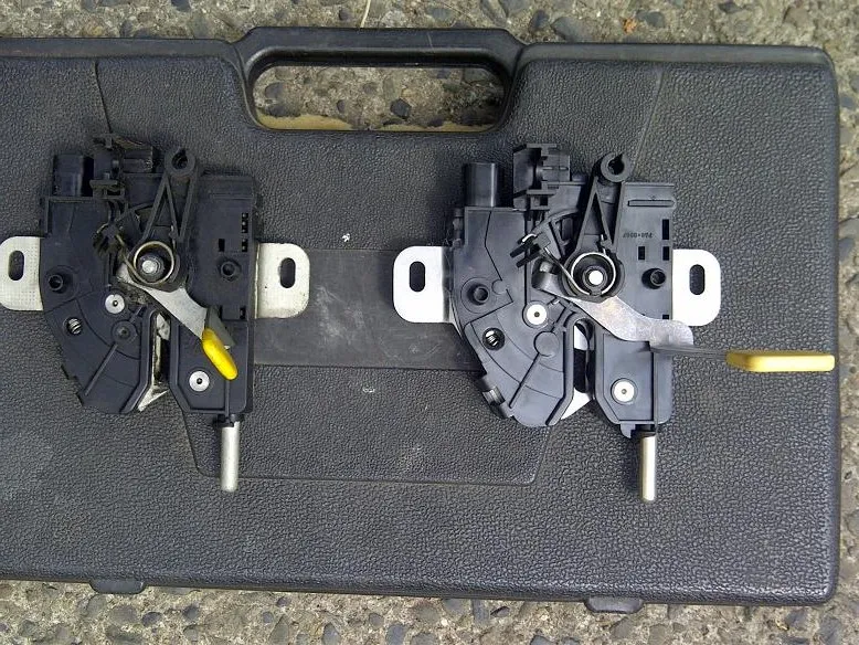 Hier der Vergleich: mit dem kleinen Hebel das originale aus meinem Fl, mit dem großen das 'neue' mit Alarmkontakt.Wie man sieht unterscheiden sie sich äußerlich nur im Entriegelungshebel.