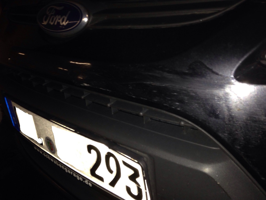 Meiner Frau und mir ist letzte Woche im Parkhaus einer vor die Stoßstange beim Fiesta gefahren (hat beim rückwärtssetzen nicht aufgepasst). War soweit alles kein Problem, Verursacher stand schnell fest, Versicherungsdaten ausgetauscht usw.