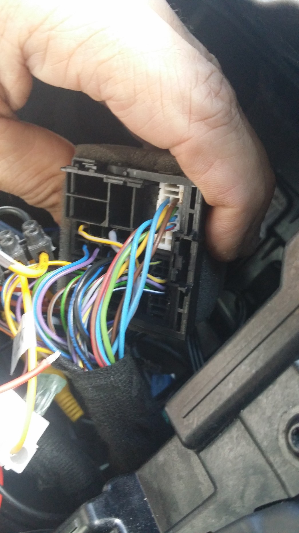 Dieser blaue Draht auf dem letzten Foto - von wo nach wo geht denn der? Wenn es der ist den ich vermute dann ist der vom Fahrzeug her (laut Pinbelegung des Quadlock-Steckers) nicht versorgt.