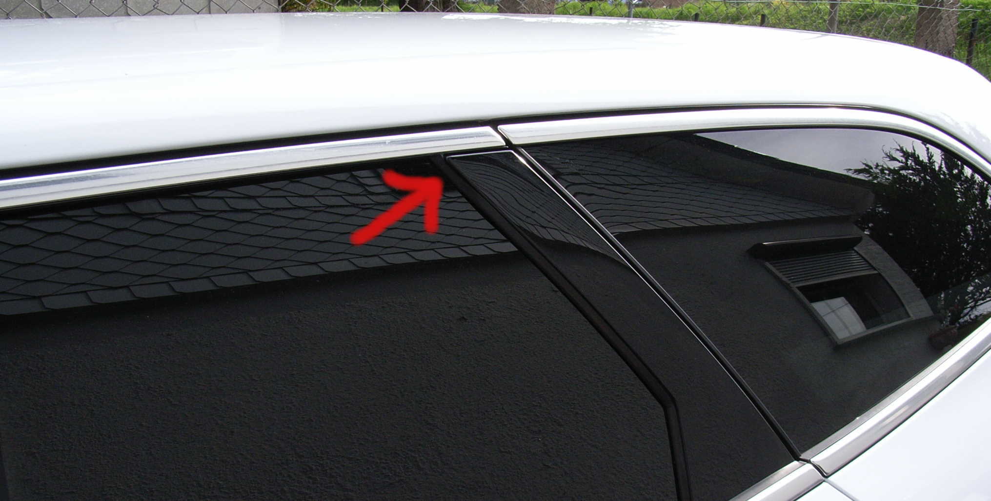 Quasi oben, wo die beiden absenkbaren hinteren Scheiben aufhören.