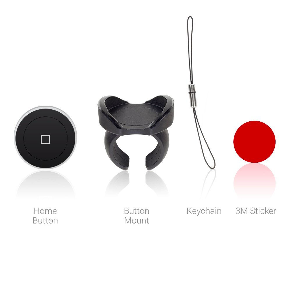 Der Knopf sieht aus wie ein Aufgeblasener Homebutton des iPhones ohne dabei billig zu wirken. Als Befestigungsmöglichkeiten wird eine Klemme fürs Lenkrad oder Fahrrad mitgeliefert, eine kleine Schlaufe um den Knopf an den Schlüsselbund zu hängen und ein Doppelseitiges Klebepad. Auf der Rückseite ist ein kleiner Pairing-Knopf (sieht aus wie ein typischer Reset Button).
