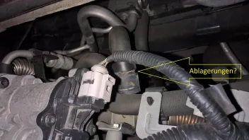 : Kühlwasserstand nur noch gerade beim Rohr vom AGB (beim Übergang zum Schlauch).