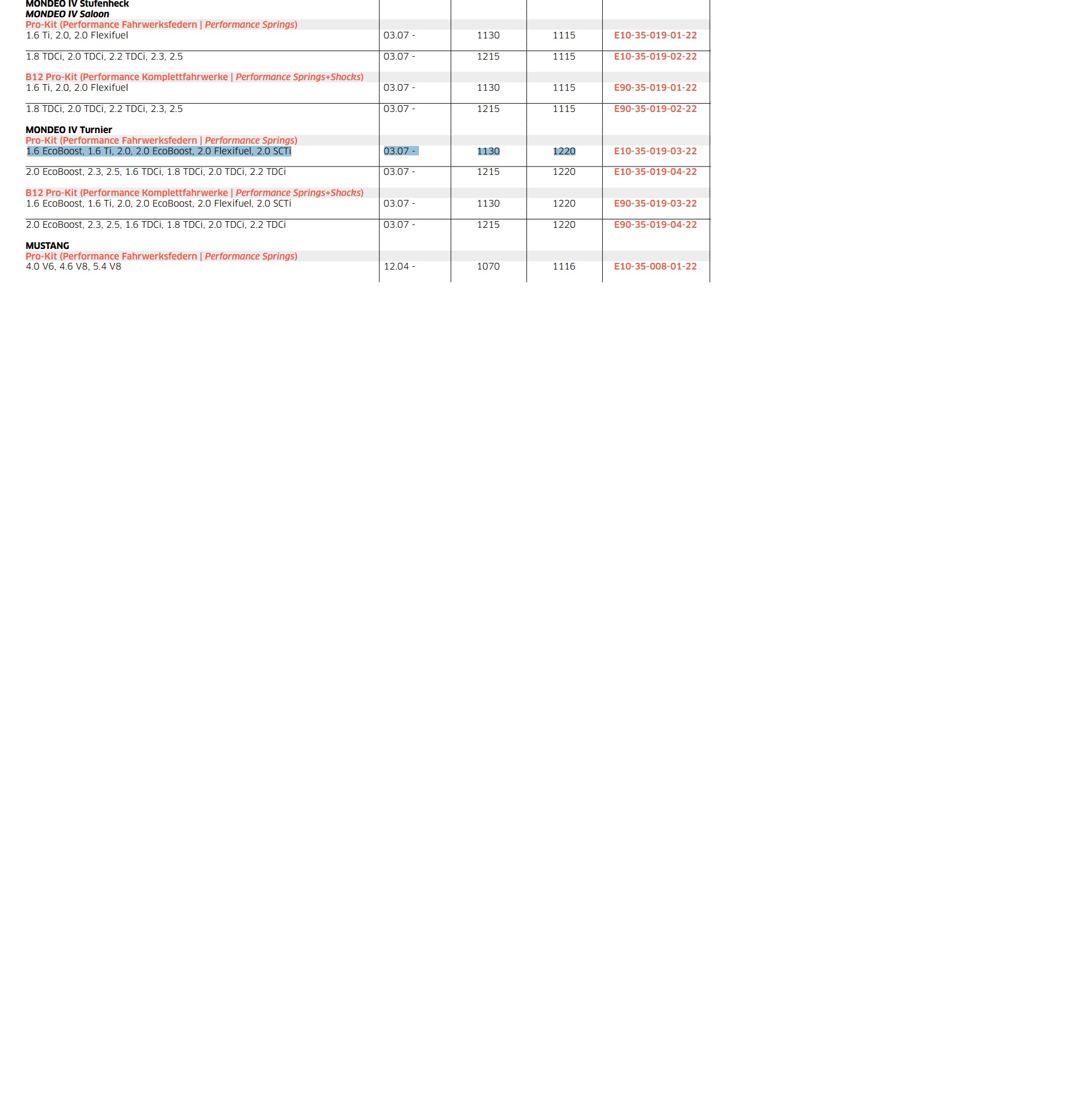 Hat eigentlich schonmal jemand Eibach auf den Fehler im Katalog aufmerksam gemacht? Ofer gefragt warum der 2.0 ecoboost sowohl bei der bis 1130kg als auch bei den über 1130kg Vorderachsfedern angegeben ist?