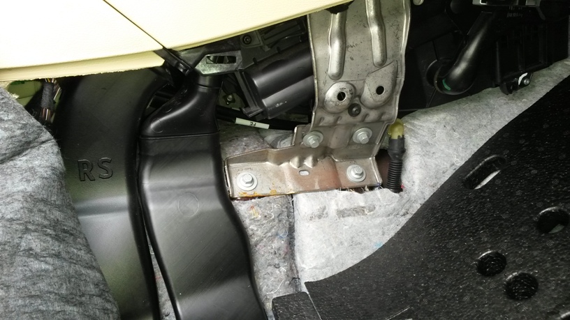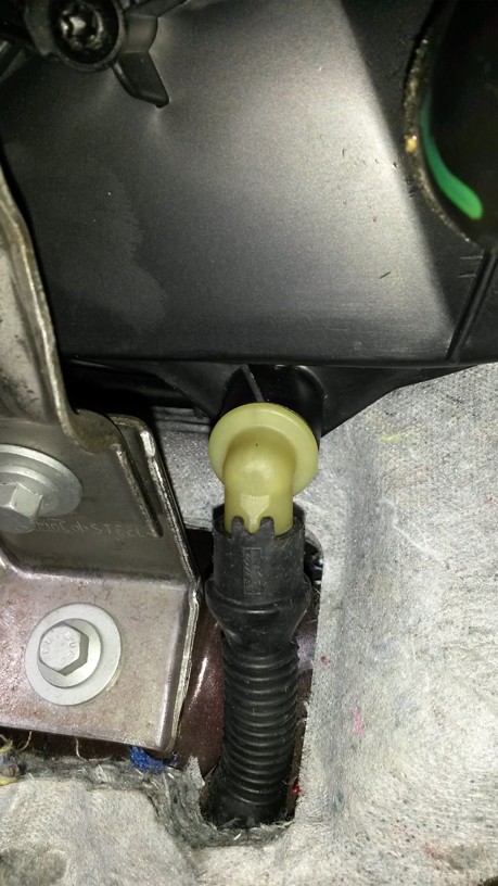 - Verkleidung der Mittelkonsole entfernt. Ablaufschlauch scheint fest zu sein.
