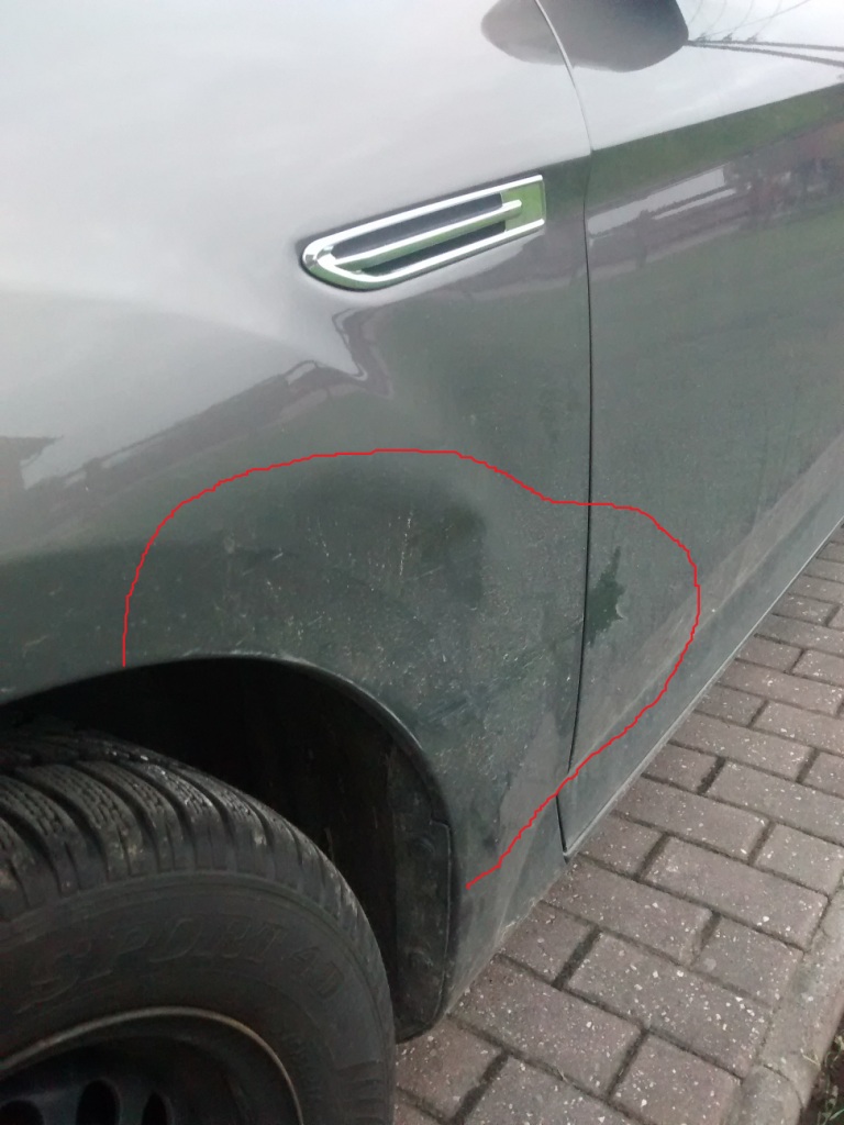 Naja, kurze Rede langer Sinn.....der Schaden liegt vom FFH geschätzt bei 1200-1300€. Kotflügel ist eingedrückt und verkratzt und ein minimaler 'Übergangskratzer' bis auf die Fahrertür... (siehe Photos).
