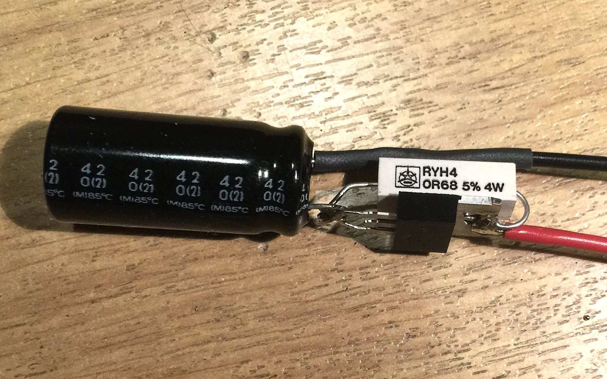 der Widerstand ist 5x5x12mm, der Kondensator ist 18x36mm