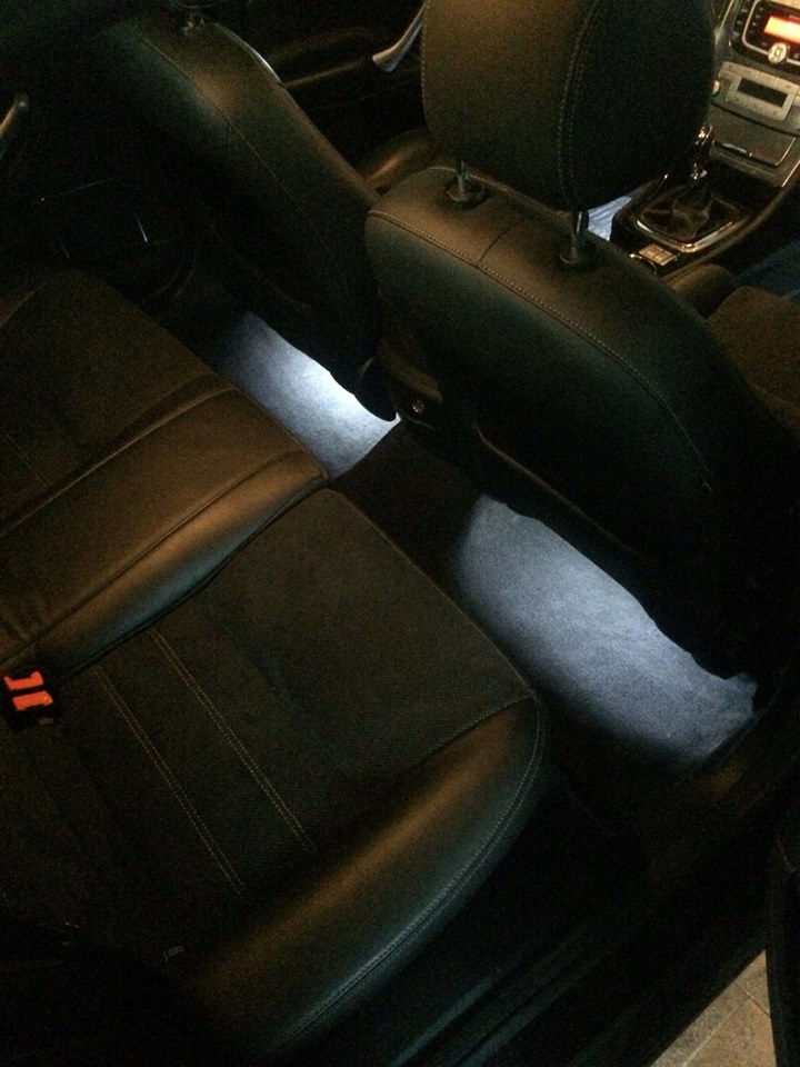 heute nach der Arbeit die Fußraum Beleuchtung auf LED streifen umgerüstet und gleich die hintere Reihe auch gleich mit beleuchtet