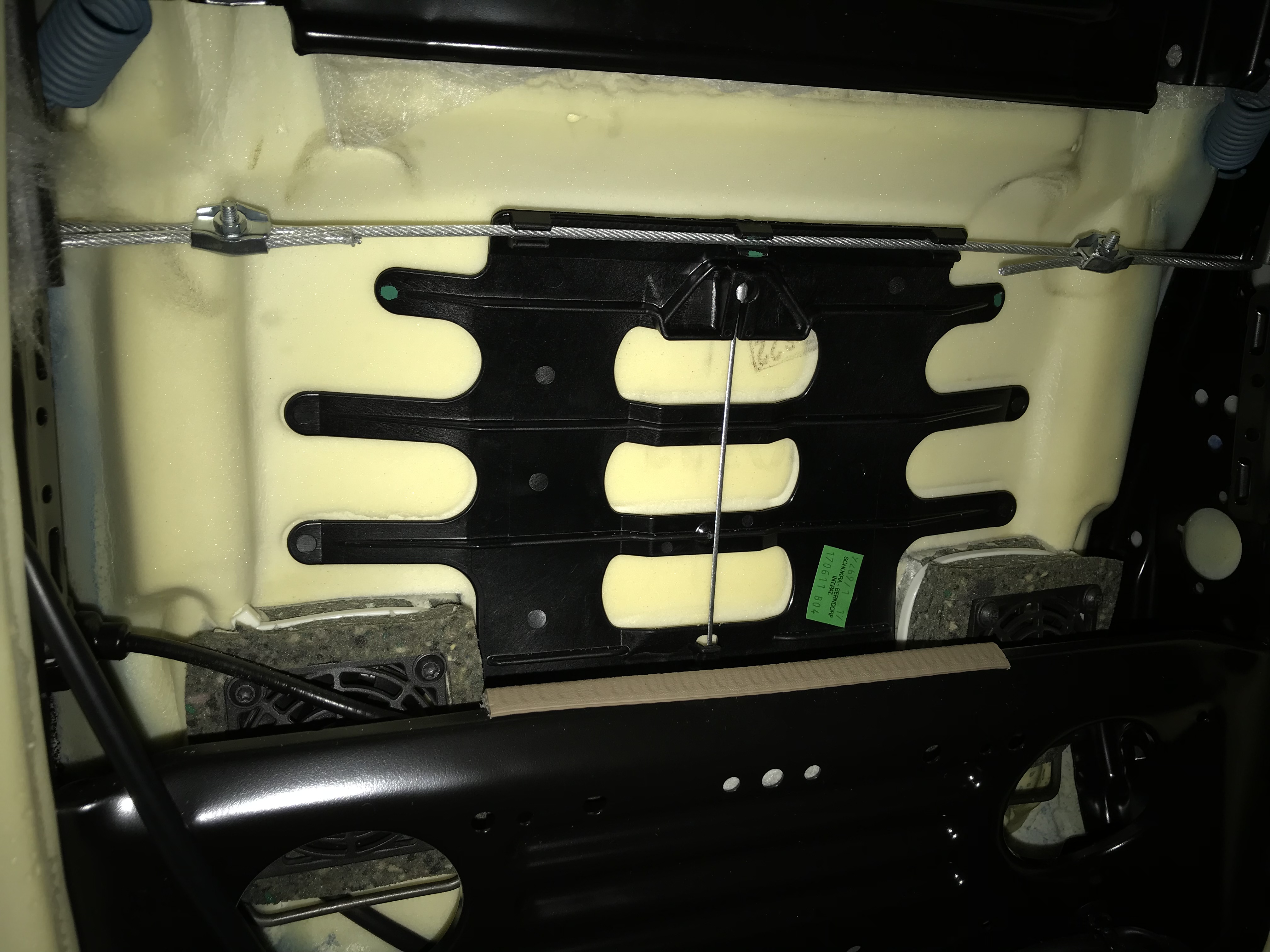 Mein Ansatz wäre jetzt die Lordosenstütze zu tauschen, wg. Feder ausgeleiert, außerdem habe ich den Eindruck dass die ganze Trägerplatte dauerhaft verbogen ist (wird ja wohl durch den Seilzug im Biegungswinkel verändert).