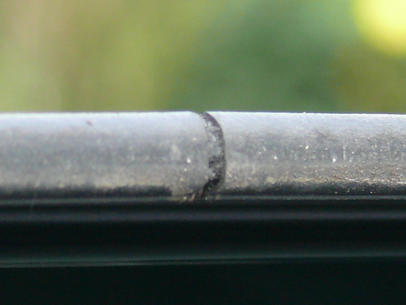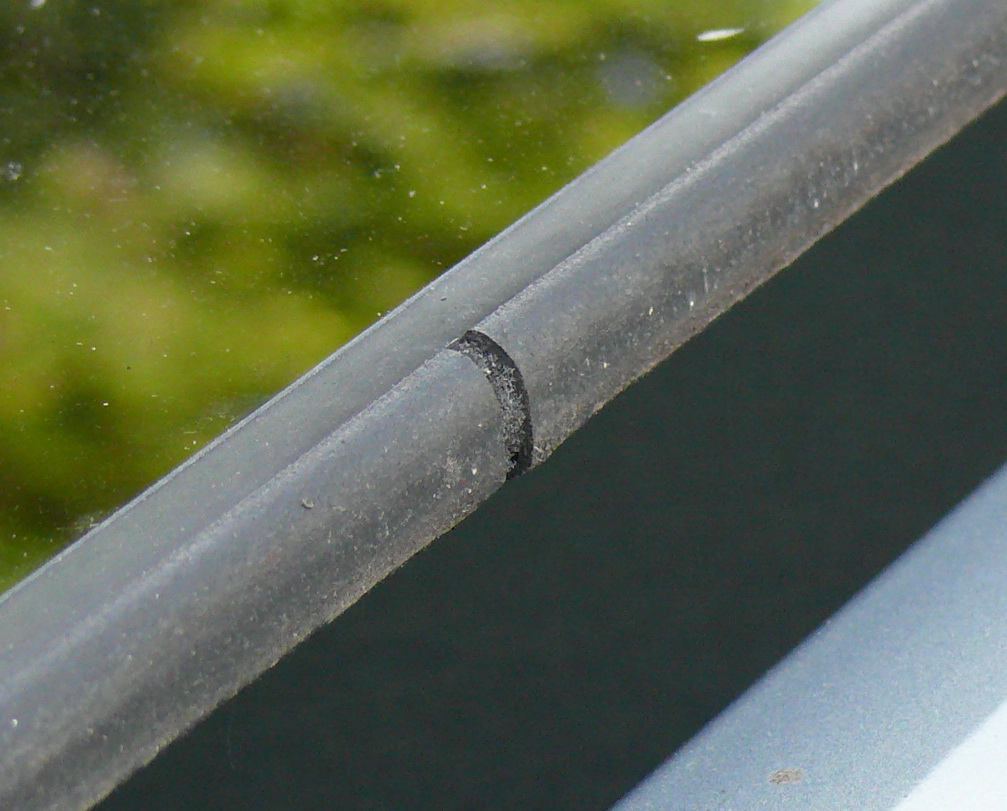 Die Umlaufende Dichtung am Schiebedach, sieht für mich so aus, als wenn sie an der Nahtstelle aufgegangen ist. Gerissen sieht es nicht aus da der Schnitt aboslut gerade ist. Der Spalt ist 3-4mm und ich denke das hier vielleicht zu viel Wasser ins Schiebedach laufen kann. Es hat zwar darunter eine Ablaufrinne, aber ich denke da passt was nicht. Ich habe in diesen Schlitz etwas Schaumstoff in die Dichtung reingefummelt.