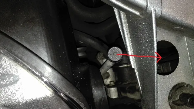 Ich habe heute die Klimaanlage neu befüllen lassen und dabei stellte sich folgendes Problem heraus: Der Monteur kam nicht an den vorderen Anschluss der Klimaanlage ran, da dieser sehr unglücklich platziert ist.