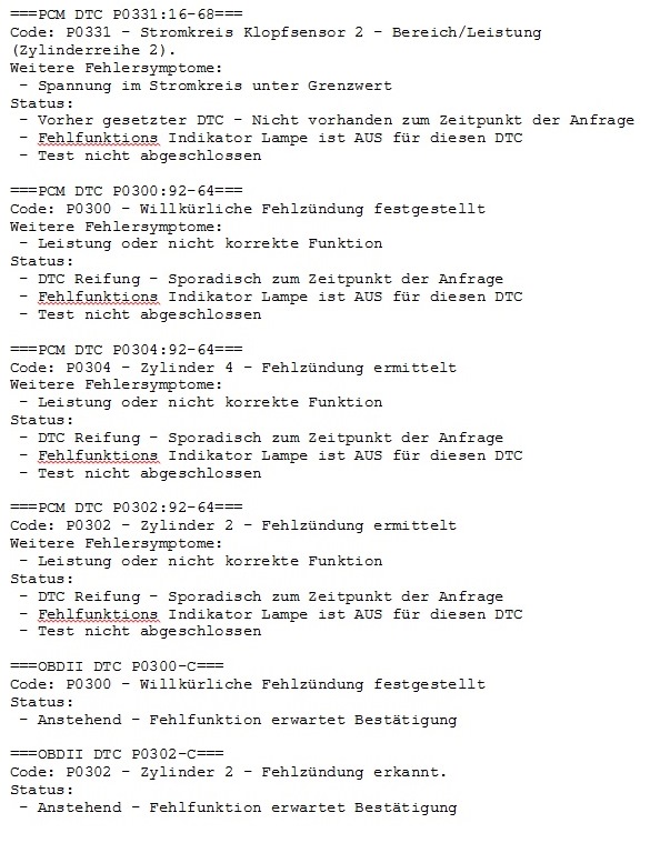 @Derric Foxx Vielleicht hilft bei dir ja auch ein Tausch der Lambda Sonde vor dem Kat. Wobei die aufgetretenen DTCs bei mir wohl eher Folgeerscheinungen waren anstatt die eigentliche Ursache. Die Klopfsensoren sind zumindest bei mir ja umsonst getauscht worden...