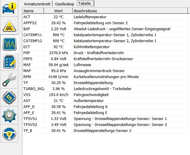 Was ich im Nachhinein interessant finde ist, welche Auswirkungen die Sondenwerte hatten und dass sich der Fehler nicht in den Logs der Fahrten erkennen lies respektive erkannt wurde. Vor allem, dass die Turbodruckwerte davon so beeinflusst worden sind finde ich sehr merkwürdig