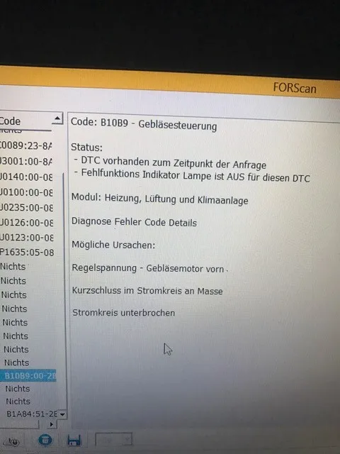 Ich habe ein Problem mit meinem Gebläsemotor, Fehler siehe Bild im Anhang.