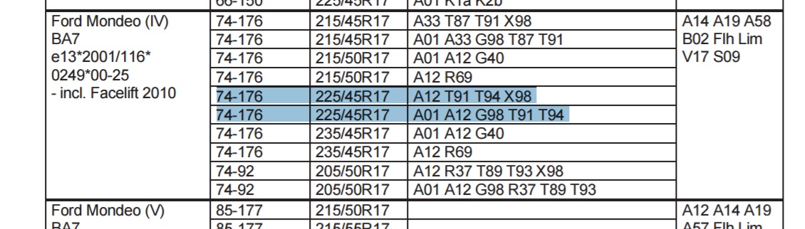 • In der ABE steht aber wieder bei 225 45 Reifenauflagen A01,