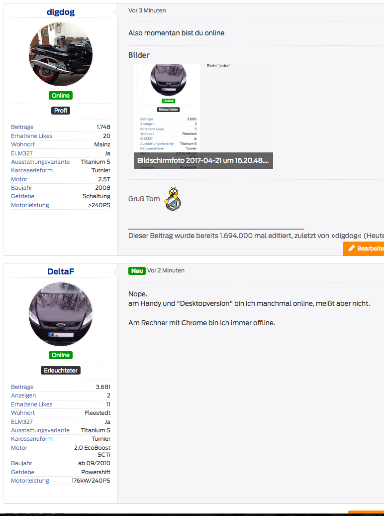 Also momentan bist du online